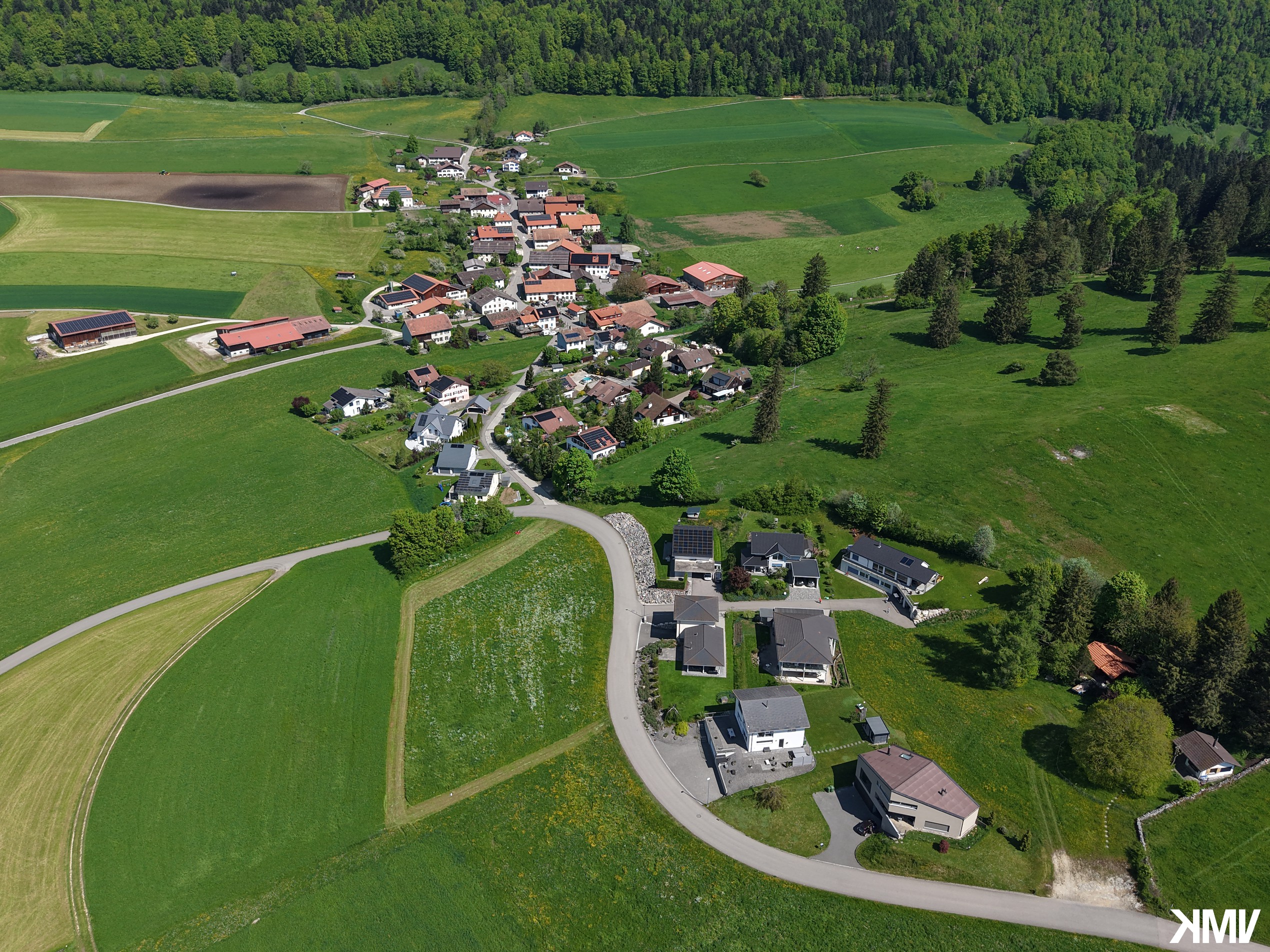 La commune de Valbirse (Pontenet, Malleray et Bévilard) vue depuis les hauteurs de l'ancien téléski.
