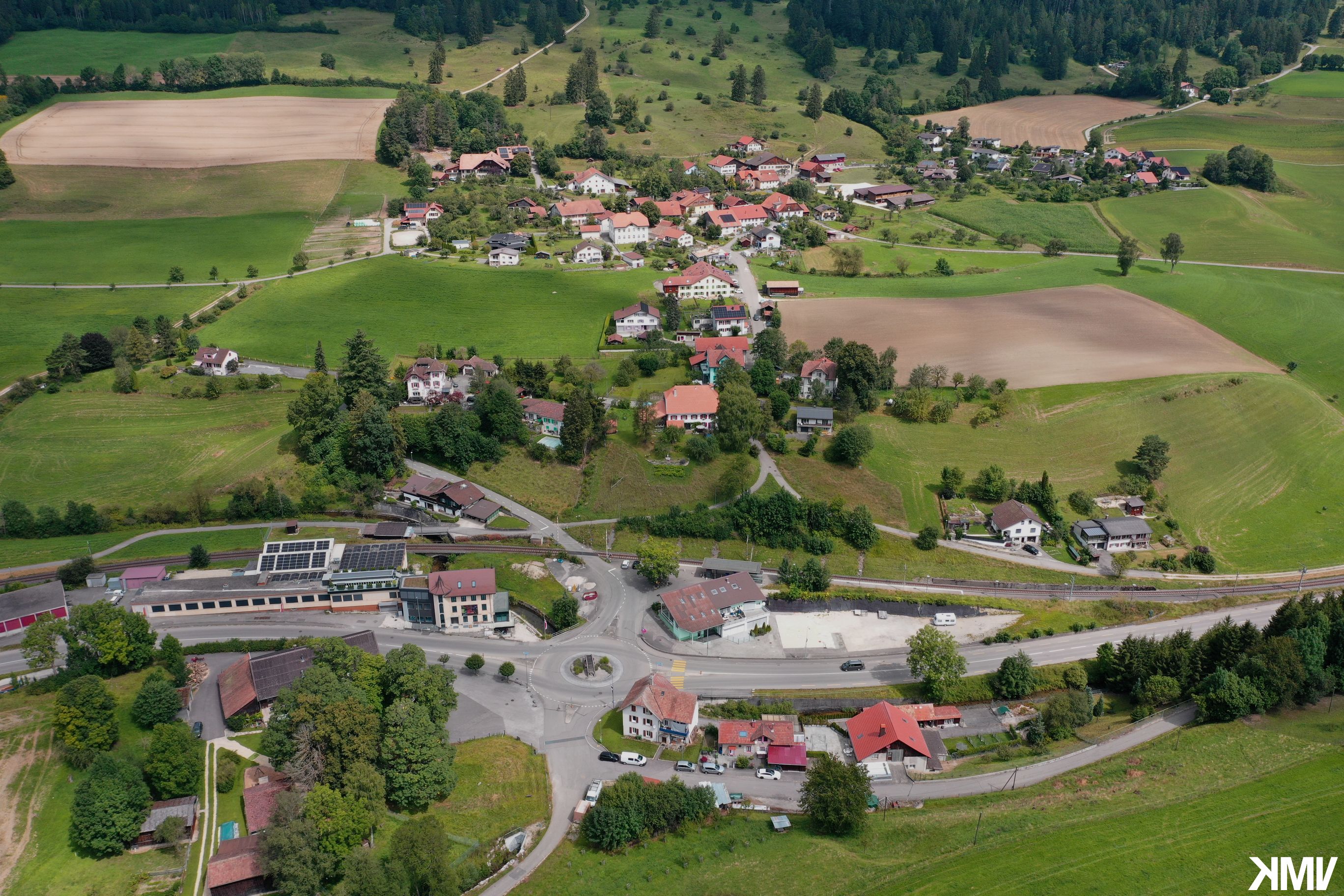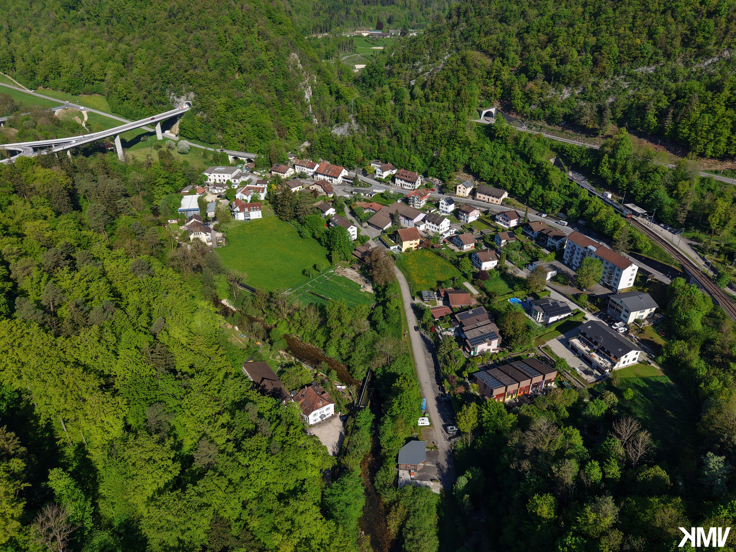 Réalisation d'une photo réunissant les trois localités de Valbirse (Pontenet, Malleray et Bévilard) afin d'en concevoir une bâche posée lors de manifestations soutenues par la commune.